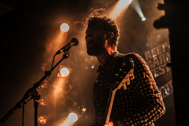 Der Abstecher war nur ein kurzer, da es uns anschließend wieder zurück in die Hasenschaukel zieht. Der skandinavische Singer-Songwriter Dad Rocks! beweist großes logistisches Talent, nachdem auch der letzter der insgesamt 5-köpfigen Band, inklusive Kontrabass, einen Platz auf der kleinen Bühne gefunden hat. Mit grandiosen Texten über "sexual frustration and social media" bis hin zu den Entscheidungen die man im Alltag so treffen muss: "founding a record label or apply at burger king". So geben sich tolle sprachliche Bilder im Minutentakt die Hand. Die überaus junge Band, die extra für den Tourabschluß anwesend war, macht dann alles perfekt. Da stehen wir nun in dieser winzigen Bar direkt vor 5 Menschen denen man ansieht, dass sie genau das machen was sie lieben. Und das hört man vom ersten Takt bis zur Zugabe inmitten des Publikums. Ein Festivalhighlight wurde selten so früh ausgemacht wie an diesem Abend.