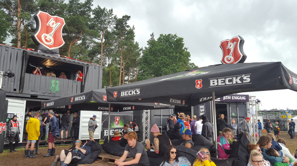 Die Realität sieht zumindest bei den Big Playern anders aus. Da sind der H&M-Tempel beim Hurricane, die Handyladestation der Telekom, die Techno-Beats beim Kickern im Pavillon von Firestone-Reifen (Was haben die nochmal genau mit Musik zu tun?). Bei Beck’s gibt es die Möglichkeit, Caps zu designen - selbstverständlich mit vorgedrucktem Beck’s-Print - und ein 360°-Foto zu machen. Markenpräsenz, verbunden mit einer Erweiterung des Entertainment-Angebots neben Riesenrad, Bungeeturm und Bayern-Rutsche. Und der neueste Dreh: Marken versuchen, durch ihre Präsenz auf Musikfestivals ein jugendlicheres Publikum zu erreichen. Wer hätte schon vorher den eher mit einem Tantentratsch-Image behafteten Kaffee von Melitta bei einem Musikfestival erwartet? Und wer den Versandhauskatalog-Riesen Otto, der Turnbeutel mit Festivalzubehör wie Ohrenstöpseln, Kondomen etc. bestückt und das Ganze „Festival-Buddy“ nennt? Ist das alles noch Rock’n’Roll? Was ist passiert?