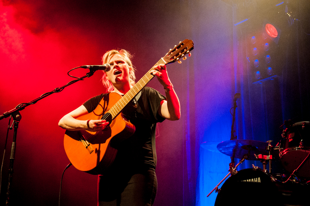 Es geht traditionell weiter. Denn die Oracles sind zu weit weg und das traditionelle Liedgut liegt uns jetzt ohnehin mehr am Herzen. Also kuscheln wir uns im Schmidts Tivoli in die schönen roten Plüschsitze und genießen einen sehr intimen Auftritt der islandischen Folk-Bardin Olöf Arnalds, der Cousine von Olafur übrigens, die ganz allein mit ihrer Gitarre auf der Bühne steht und mit ihrer Stimmhöhe zwar immer ganz kurz an der Erträglichkeitsgrenze vorbeischrammt, aber einfach eine wundervoll innige Interpretin ist, auch wenn man natürlich die isländischsprachigen Songs wieder sehr individuell vereinnahmt. So oder so: Das war wunderschön. Nach so viel Wohlklang ist Hauschka, der im Mojo Club sein aktuelles Album "Abandoned Cities" vorstellt und auch ob des kürzeren Laufweges den Vorzug vor Jens Friebe erhalten hat, einen Tick zu anstrengend für unsere verwöhnten Ohren. Zweifellos ist das große Kunst, was dieser Mann da mit seinem präparierten Piano veranstaltet; allerlei Percussionsinstrumente, ja sogar Tischtennisbälle legt er auf die Saiten des Flügels, und durch dessen verspiegelte Innenseite kann man auch richtig schön alles, was er da macht, erkennen. Doch im Sitzen hätte man sich gewiss besser auf die Musik konzentrieren können; es bleibt ein irrsinniges Faszinosum, das auf mangelhaft eingestellte Lauscher trifft.