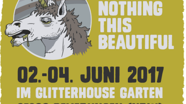 „Nothing this beautiful“ - so lautet dieses Mal das Motto vom schönsten kleinen Open Air Deutschlands, und das ist ja nun wohl mal in jeder Hinsicht zu unterschreiben. Das Einhorn als Mottotier stand schon im letzten Jahr fest - dass es kein romatisch-verkitschtes plüschiges Regenbogen-Hipster-Fabelwesen sein würde, hätte da eigentlich schon klar sein müssen, aber das finale Artwork des Festivals ist wirklich eine bemerkenswerte Motto-Antithese. Vollkommen desolat läuft ihm grüner Schleim aus den Mundwinkeln, die Nacht war hart wie das Leben an sich, nothing this ugly möchte man darunter schreiben.