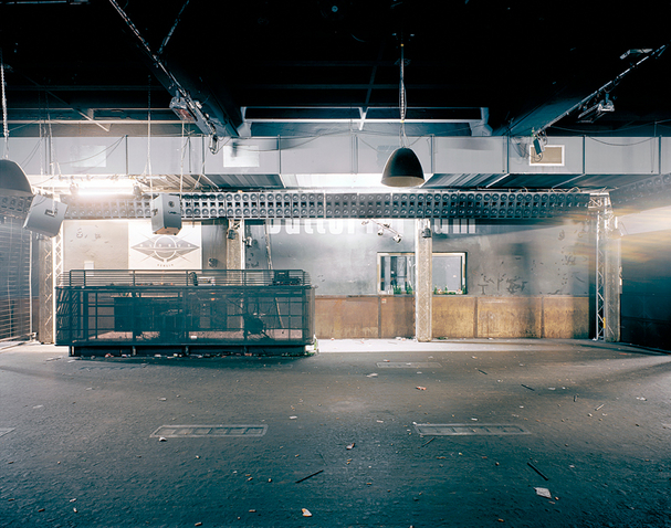 Während nachts im Club die Stroboskope blitzen und die Menge schnelle rhythmische Bewegung ausführt, mussten Giesemann und Schulz mit Langzeitbelichtung arbeiten, um genügend Licht für ihre Fotografien zu bekommen. Die Zeit dehnt sich auf ihren Bildern aus und was in einer Diskonacht manchmal verwischt, scheint hier kühl und ausgeleuchtet. Der sogenannte Zauber der Nacht löst sich auf und zurück bleibt ein Raum, der von alleine nichts bewegt. Es sind verlassene Fabriken die hier zum Vorschein kommen und die Arbeit wird sichtbar. Die Arbeit, die jeder Partygast leisten muss um die Nacht unvergesslich zu machen und um in großen fensterlosen Räumen eine Art Freiheit verspüren zu können.