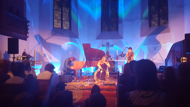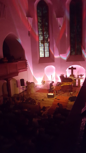 Und weil es so schön war, den Tag mit diesem isländischen Elfenfolk zu beenden, beginnen wir den nächsten gleich mit selbigem. Da spielen Pascal Pinon nämlich noch ein zweites Konzert, diesmal allerdings in der Kirche. Nachdem wir der heute noch unmenschlicheren Hitze auf eine schattige Bank am Kanal entfliehen, wo wir vorbeifahrende Bootsfahrer grüßen und einem irritierten Schwan winken, sichern wir uns erfolgreich einen platz in der zweiten Kirchenbank und erleben, wie der Eindruck vom Vorabend sogar noch getoppt wird. In der Kirche bekommt die Musik des Duos einen noch feierlicheren, noch intensiveren Touch. Zwar sind wir uns im Anschluss einig, das beide Konzerte was Ambiente und Gefühligkeit angeht, eigentlich nicht vergleichbar sind, doch für mich hat die Kirche hier die Nase vorn.